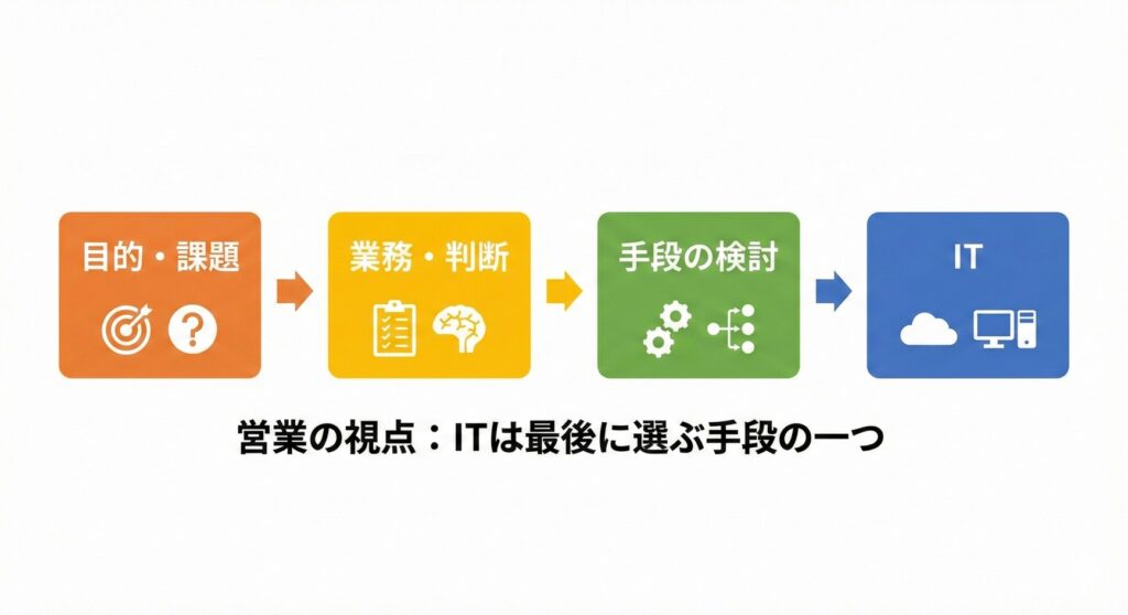 これができると、ITの話が「売り込み」ではなく相談に変わります。